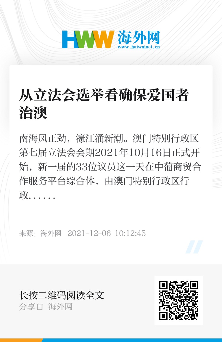 回顾此次选举,特区政府致力于确保选举在公平、公正和公开原则下举行,特区立法会选举管理委员会依法对参选人的被选资格作出决定,澳门特区终审法院作出裁决维持决定。这些都严格贯彻落实宪法和澳门基本法及“爱国者治澳”原则,确保特别行政区管治架构牢牢掌握在爱国者手中。