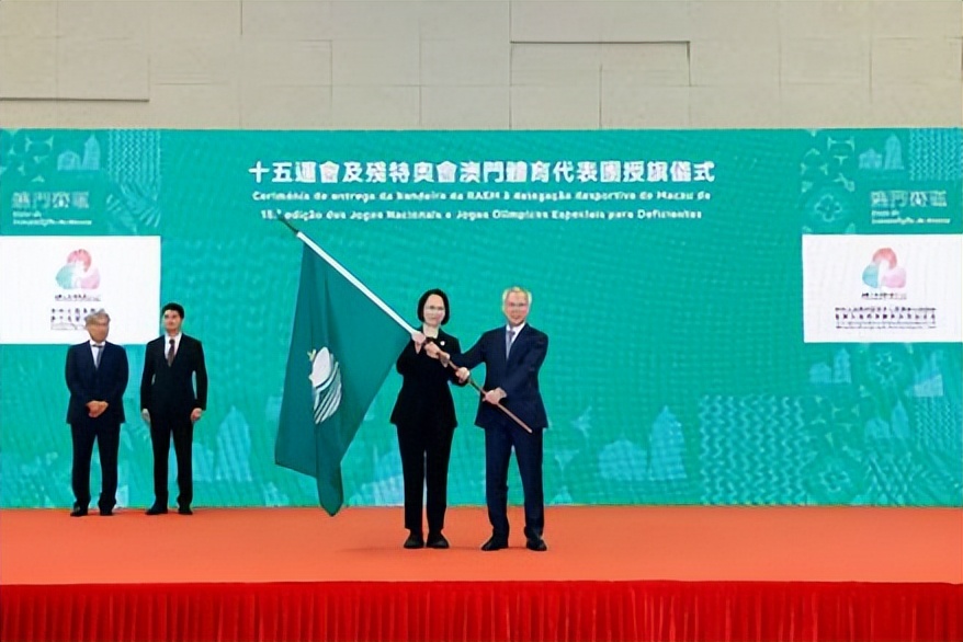 仪式在庄严的国歌声和会歌《气势如虹》激昂旋律中拉开序幕。岑浩辉向十五运会及残特奥会澳门体育代表团代表、社会文化司司长柯岚授予特区区旗,勉励体育代表团取得佳绩。据悉,澳门将派出超过400人的体育代表团参加十五运会的23个比赛项目。