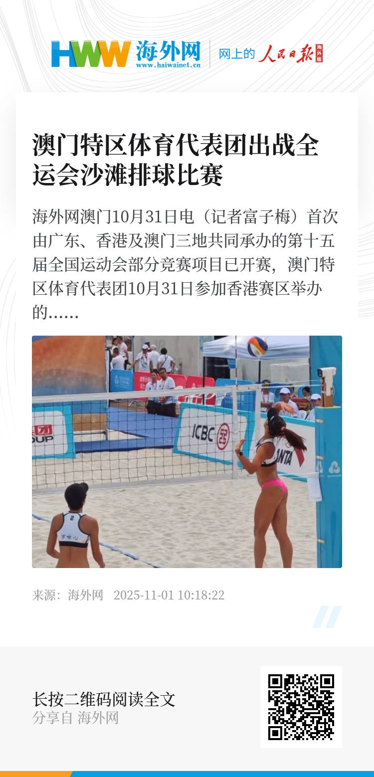 海外网澳门10月31日电(记者富子梅)首次由广东、香港及澳门三地共同承办的第十五届全国运动会部分竞赛项目已开赛,澳门特区体育代表团10月31日参加香港赛区举办的沙滩排球比赛小组赛,梁安盈/罗咏心、李泽坤/吴睿龙组合首战均未能获胜。