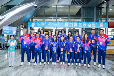 图为江苏队抵澳。(澳门赛区组委会供图)