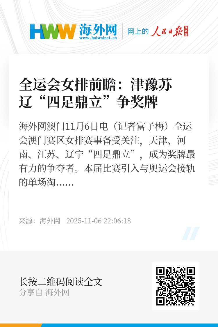 海外网澳门11月6日电(记者富子梅)全运会澳门赛区女排赛事备受关注,天津、河南、江苏、辽宁“四足鼎立”,成为奖牌最有力的争夺者。本届比赛引入与奥运会接轨的单场淘汰制,为奖牌的最终归属增添更多不确定性,包括上届冠亚军队伍在内都慎言“夺金”。