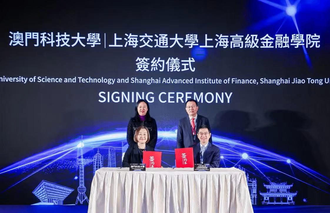 开幕式上,澳门科技大学商学院院长盛妮与上海交通大学上海高级金融学院副院长张湧签署战略合作备忘录,双方将在金融科技领域加强合作,共同推动人才培养、前沿研究及创新项目孵化,深化沪澳两地产学研协同发展。