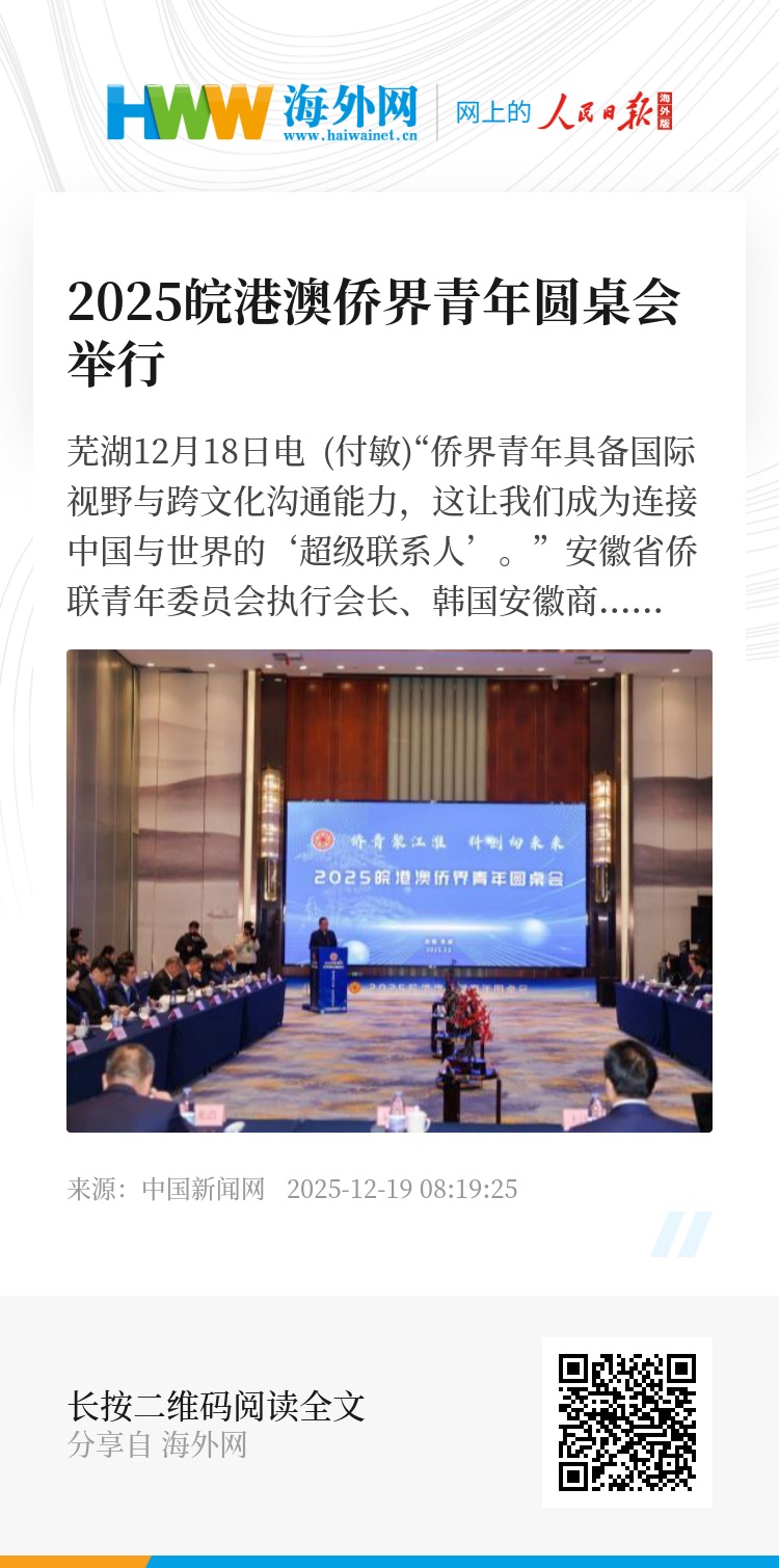 当日,2025皖港澳侨界青年圆桌会在芜湖举办。该活动是安徽省侨联“侨聚江淮”品牌矩阵的标志性项目之一。