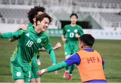 图为澳门队取得“粤澳杯”第二回合比赛胜利。(澳门特区体育局供图)