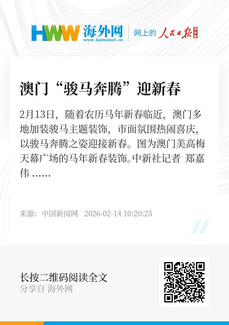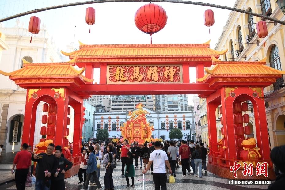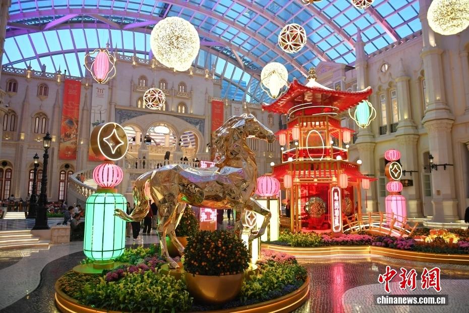 2月13日,随着农历马年新春临近,澳门多地加装骏马主题装饰,市面氛围热闹喜庆,以骏马奔腾之姿迎接新春。