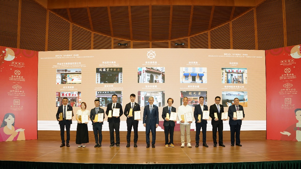 图为10家“百年传承店"获颁证书。(澳门特区政府经济及科技发展局供图)