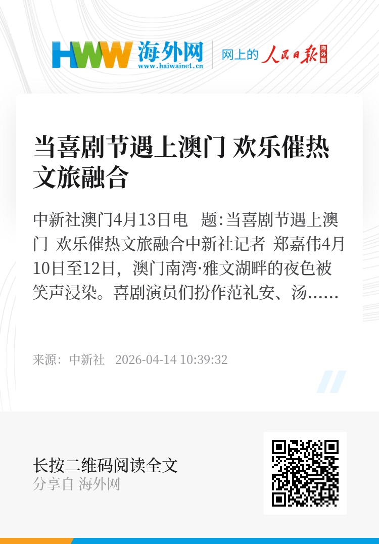 中新社澳门4月13日电 题:当喜剧节遇上澳门 欢乐催热文旅融合
