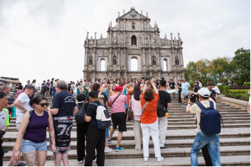 同日下午16时,澳门大三巴牌坊。悠扬的古琴声从人群中传来,十几位身着华美汉服的青年,仿佛从时光隧道穿越而来,衣袂飘飘,发髻高挽,瞬间吸引了所有人的目光。