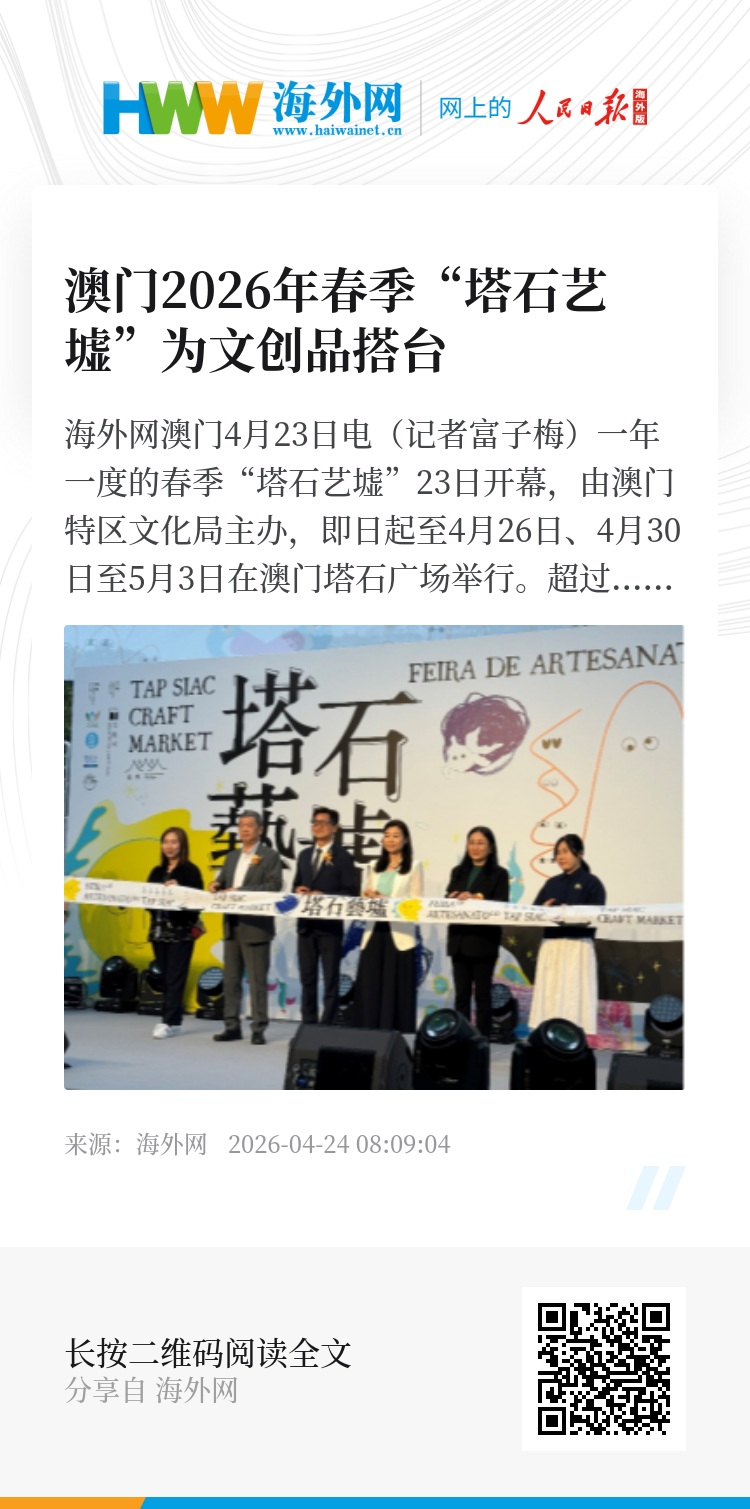 据悉,塔石艺墟举办以来,为澳门新兴文创品牌提供了宝贵的展销测试平台,并配合业界讲座、组织参展等一系列扶持措施,已成功孵化了不少澳门文创品牌,推动文创产业市场化发展。